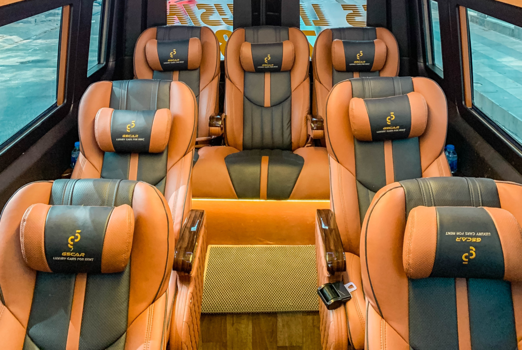 Nội thất xe sang trọng, bên trong có 9 ghế có thể tùy chỉnh độ ngả nghiêng theo ý muốn.